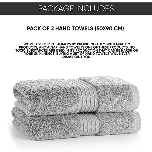 ALSAP Grey Hand Towels Pack of 2 – Ultra Soft Super Absorbent 700 GSM Egyptian Cotton Towels – Bathroom Linen Sets – Luxury Hotel Quality Cotton Hand Towels Set Convenient Size 50×90 cm