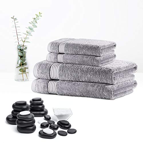 Comvi Luxury Towels 700GSM Bamboo Grey Bath Towels Set of 4 (2 Bath & 2 Hand Towels) – 50% Bamboo 50% Cotton Bathroom Linen – Soft, Absorbent & Durable Bathroom Towels –70 x 130 & 47 x 85 cm – Grey