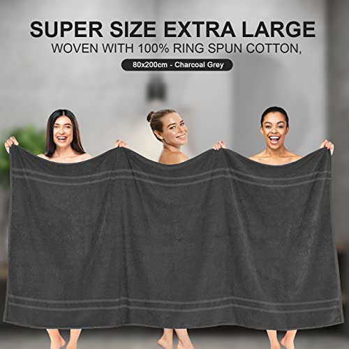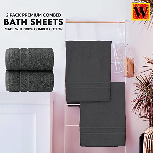 Westlane Linens Jumbo Bath Sheet 80 x 200 cm – Premium Cotton Extra Large Bath Towels – Highly absorbent Quick dry towels bath sheets Hotel Quality (Pack of 2 Charcoal)