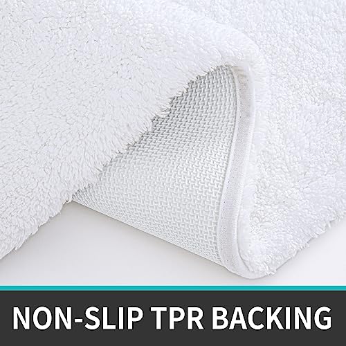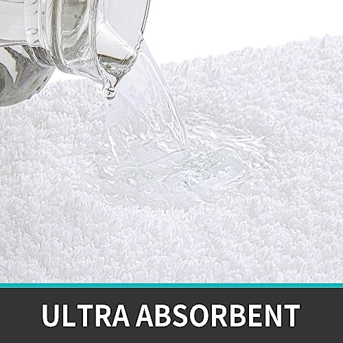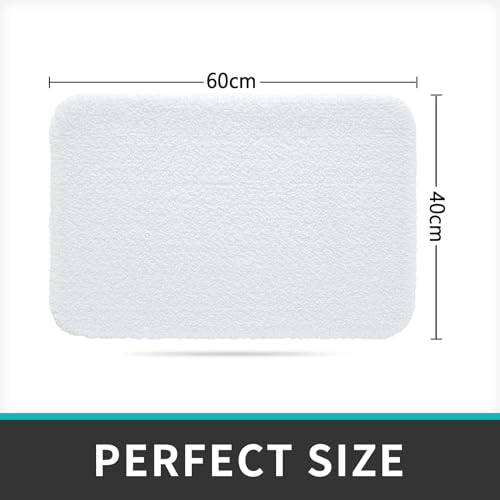 DEXI Microfiber Bath Mat 40 x 60 cm, Extra Soft and Absorbent Bathroom Mat, Non Slip, Fluffy Shaggy, Machine Washable, Thick Bathroom Rugs for Bathroom Floor, Tub, Shower Room, White