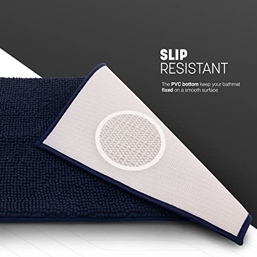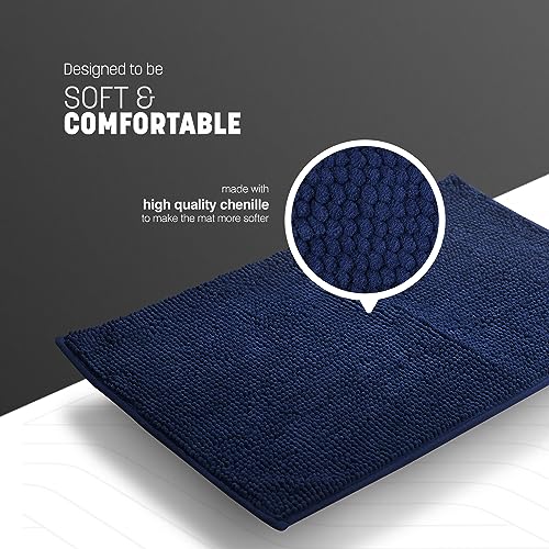 KEPLIN Non-Slip Microfibre Bath & Toilet Mat – Plush & Comfortable Rug with Machine Washable Design – Water Absorbent & Quick Drying to Keep Bathroom & Home Hygienic & Clean – (40x60cm) Navy