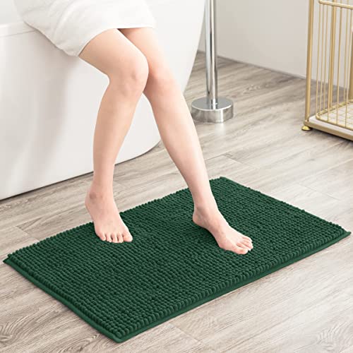 subrtex Chenille Bath Mats for Bathroom Extra Soft and Water Absorbent Non Slip Bath Rug Perfect Plush Carpet Mats for Tub, Shower (40×60cm, Green)