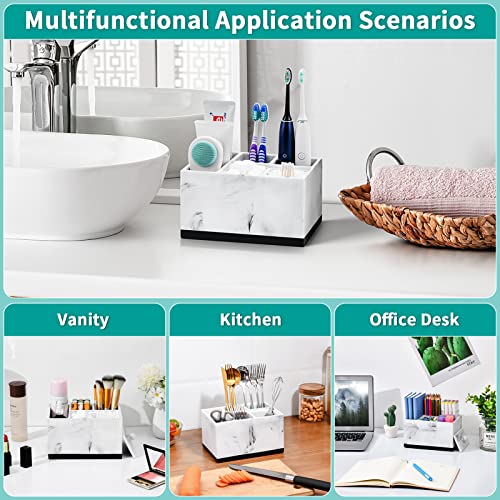 VITVITI Toothbrush Holder for Bathroom,5-Compartment White Marble Resin Bathroom Organizer for Toothpaste,Toothbrushes,and Bathroom Accessories-Countertop Storage for Vanity Counter(White with Cover)