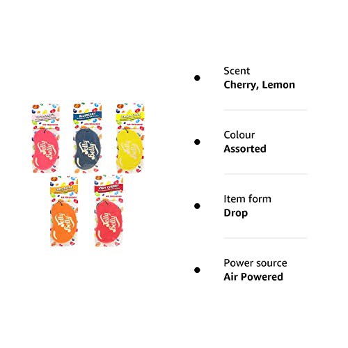 CarPlan 5 x Assorted Jelly Belly 2D Car Air Freshener Set – Cherry, Blueberry, Tangerine, Lemon, Tutti Fruity