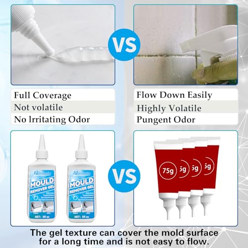 Easy to Use: Just spread the mould cleaner evenly where you need to remove mould, wait 8 hours or more, and see the amazing results after washing. This is a mild bathroom mould remover that requires no scrubbing, sanding, wire brushing (be sure to wear gloves before use to prevent injury. Use the mould remover gel with caution for sensitive people).
