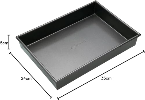 MasterClass 35 x 24 cm Baking/Roasting Tray with PFOA Non Stick, Robust 1 mm Carbon Steel Deep Rectangular Traybake Tin, Grey