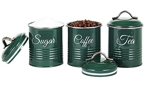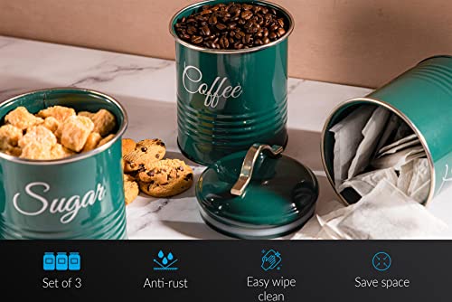 Innoteck Essentials Tea, Coffee, Sugar, Canister Set – Decorative Kitchen Food Storage – Easy to Open Airtight Lids – Storage Tin for Your Favorite Tea, Sugar, and Coffee – Set of 3 Canisters Green