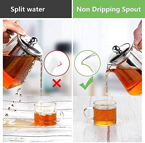 PluieSoleil Clear Glass Teapot with Infuser, Round Shape Infuser Tea Pot, Heat-Resistant Borosilicate Glass Strainer Teapot, Stovetop Safe Tea Maker (450ML Amazon Delivery)