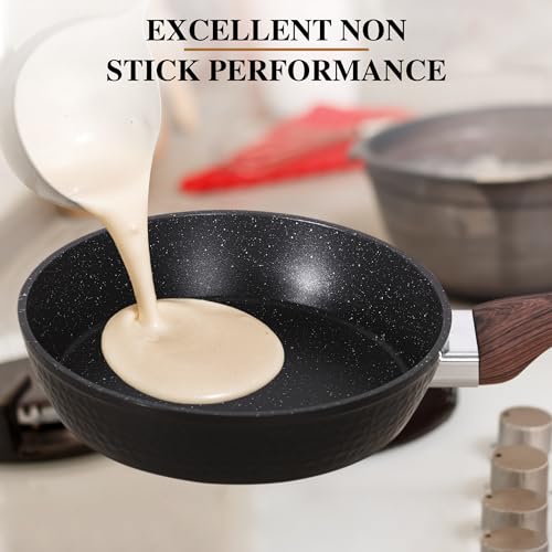 Non-stick Pan Set: Excellent non stick performance keeps food sliding smoothly along the surface for easy clean. You can realice easily cook without oil, prepare healthy meals for your family. Suitable for gas, electric, ceramic and induction hobs.