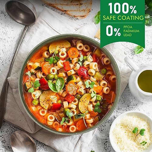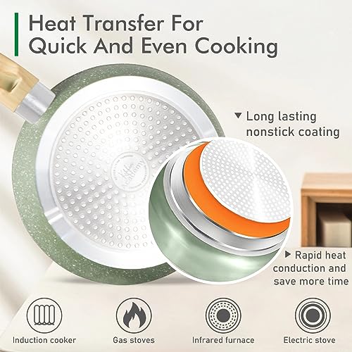 Kitchen Academy 12 Pieces Nonstick Pots and Pans Set, Induction Cooking Pan Set, Non Stick Saucepan Set, Frying Pan Set, Green