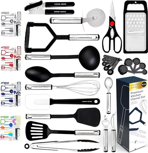Kitchen Utensils Set – Non-Stick Heat Resistant Cooking Utensils Set – Spoons Turners Spatula Ladle Set – Kitchen Tools Gadgets Accessories (25 pcs Nylon Set – Black)