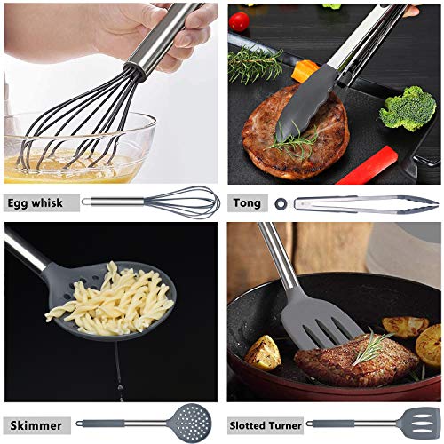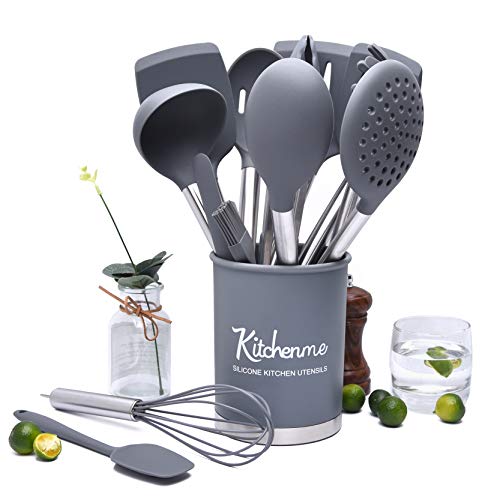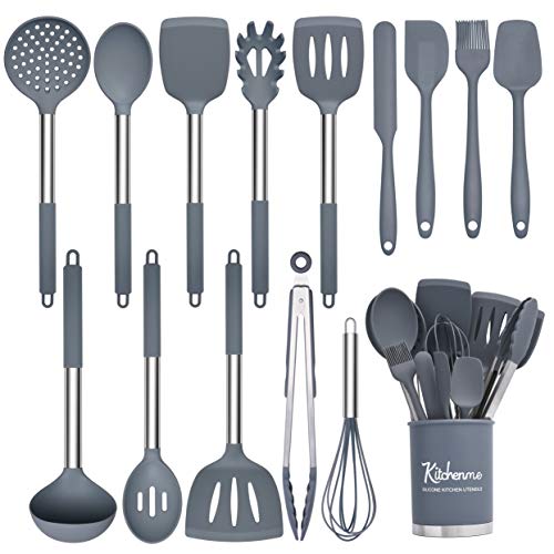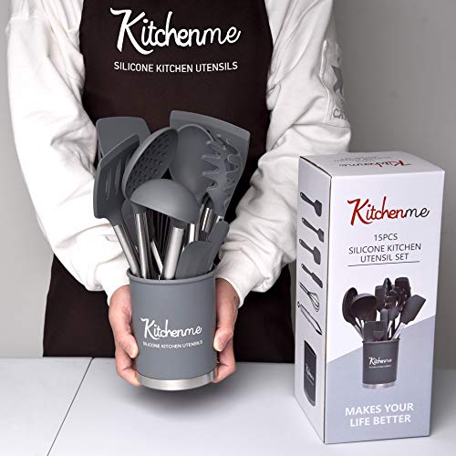 Kitchenme Silicone Kitchen Utensil Set, 15-Piece Heat-Resistant Kitchen Tool Set for Non-Stick Cookware, Kitchen Gadget Set, Stainless Steel Cooking Utensils with Holder