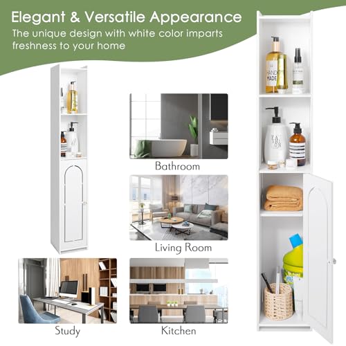 FACOKOLA Bathroom Storage Cabinet, Bathroom Floor Cabinet, Freestanding 4-Tier Tall Storage Cabinet with Door, Multipurpose Slim Cabinet for Home Office, Bathroom, Living Room, Bedroom, White
