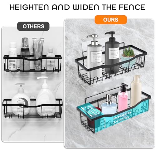 FANTICDE Bathroom Shelf Organiser No Drilling,Adhesive Shower Storage Rack,Adhesive Shower Storage Rack,with Soap Razor Holder,Toothbrush Holder,Black(5-Pack)