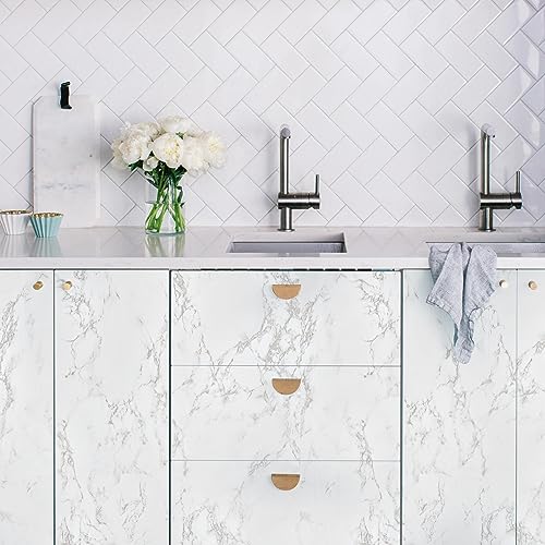 ​Hode Marble Sticky Back Plastic 44X200cm Granite White Grey Self Adhesive Wallpaper Waterproof Vinyl Wrap Roll Furniture Stickers for Kitchen Countertop Bathroom