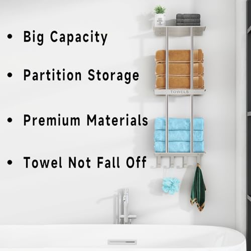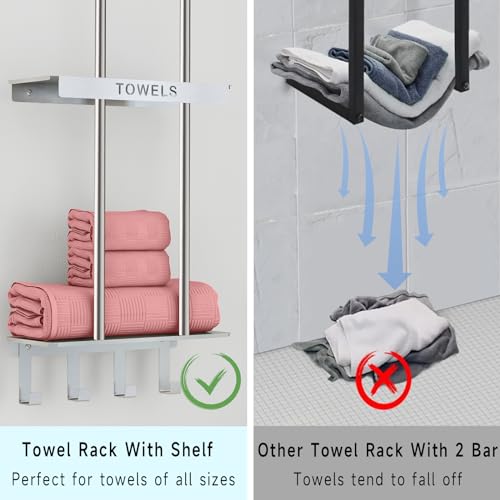 【Premium Stainless Steel Quality】-Crafted from high-quality stainless steel, our towel storage rack guarantees durability and resistance against rust. This means easy maintenance – a quick wipe, and it’s as good as new.