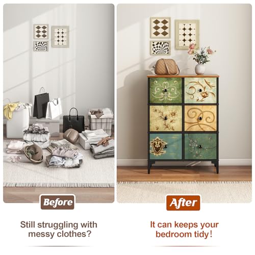 LYNCOHOME Chest of Drawers, 6 Drawer Fabric Bedroom Dresser Storage Drawrs, Storage Organizer Unit for Bedroom, Living Room, Entryway, Nursery