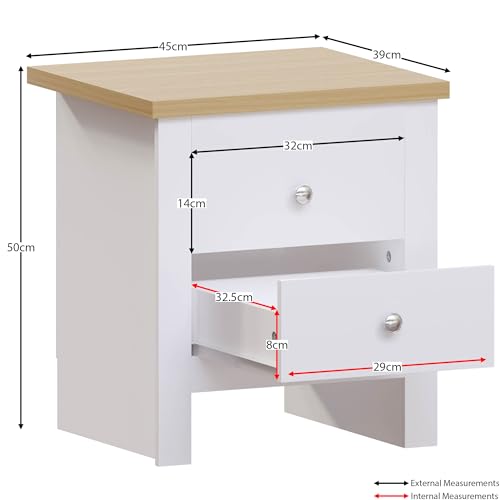 Vida Designs Arlington 2 Drawer Bedside Cabinet Chest of Drawers Table Storage Bedroom (White)