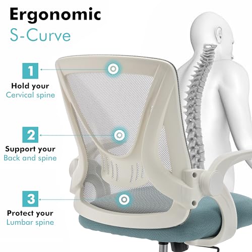 Blisswood Office Desk Chair, Ergonomic Mesh Chair With 90° Flip-up Armrest Swivel Computer Chair With Lumbar Support, Adjustable Height, Back Support 360° Rotation Gaming Chair For Home Office