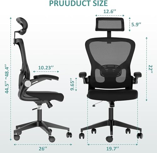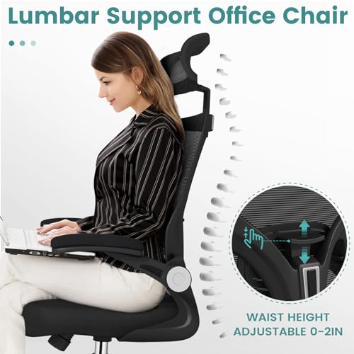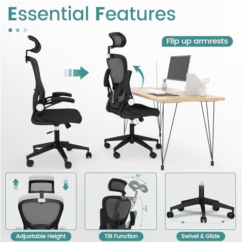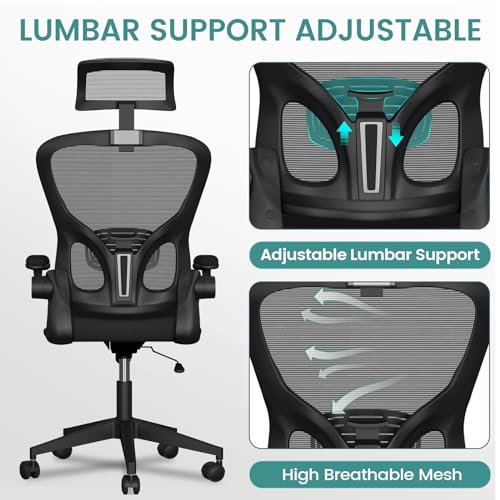 Iycorish Ergonomic Office Chair, Desk Chair with Lumbar Support, Mesh Swivel Ergonomic Office Chair Computer chair with height adjustment & fold up arms, 330lbs Weight Capacity