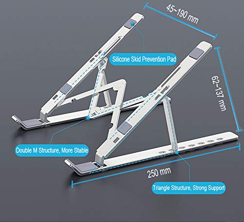 ✅【Portable & Foldable】:This portable laptop stand only weighs 0.8 pounds and can be quickly folded into a small size of 9.52” x 2” x 0.9”. Easy to carry anywhere with a durable sleeve bag. Ideal for people who travel for business a lot.