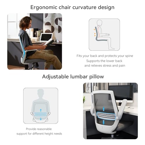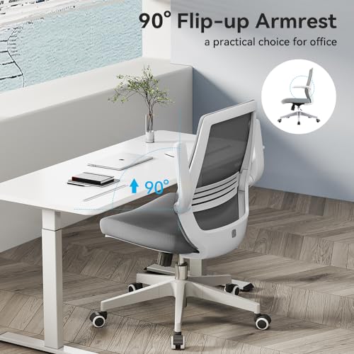 SIHOO Ergonomic Office Desk Chair, Swivel Computer Chair Height Adjustable Mesh Back Executive Home Chair with Lumbar Support, 90° Flip-up Armrest (Grey)