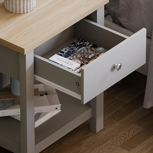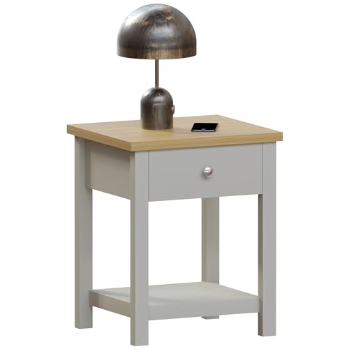Vida Designs Arlington 1 Drawer Side Table Living Room End Sofa Coffee Laptop Tea Table (Grey)