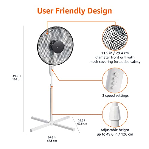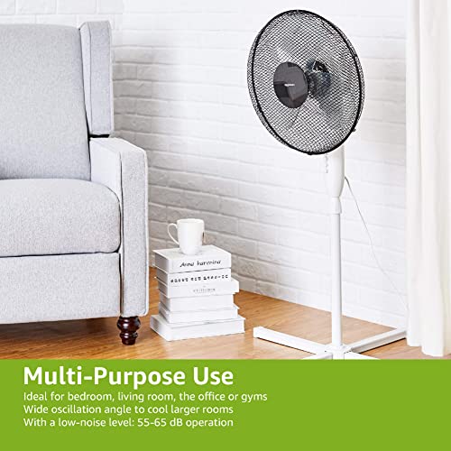 Amazon Basics 3-Speed Oscillating Pedestal Floor Fan with Tiltable Head, 40 Watts, Black With White