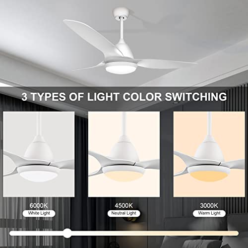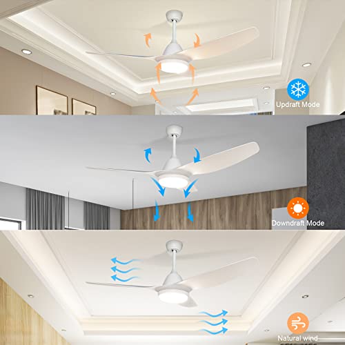 GLITI Ceiling Fan with Lighting and Remote Control, Lamp with Fan Flat 52 Inches AC, Quiet 3 Blades Ceiling Fan with Lights Led 24W for Bedroom Living Room, White (FYD-3518)
