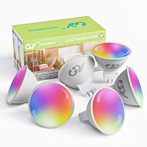 GY MR16 Smart LED Bulb,5W 380lm GU5.3 WiFi LED Light Bulb,Compatible with Alexa/Google Home 2.4 GHz WLAN,Dimmable Warm White Cold White and Multicolour Bulb, Control by APP, 6 PCS