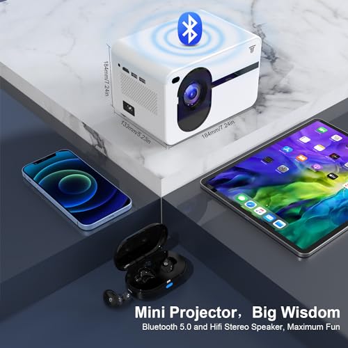 2024 New Upgraded Mini Projector with Enhanced Features 5G WiFi, Full HD 1080P, BT 5.1 Support, 12000 Lumens for Home Cinema, Compatible with Smartphones, Android/iOS/TV Box/PS5/XBOX.
