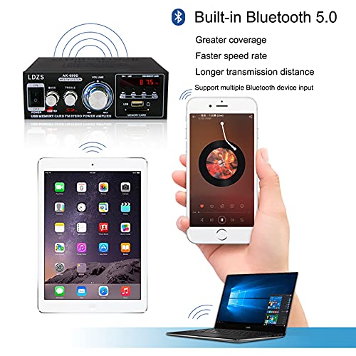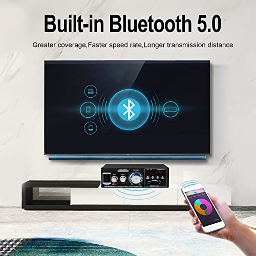 Bluetooth 5.0 Audio Amplifier, Digital Amp 2.0 Channel 100W, 2 Channel Stereo Wireless Hi-Fi Receiver USB SD AUX, for Home Speakers Theater Entertainment