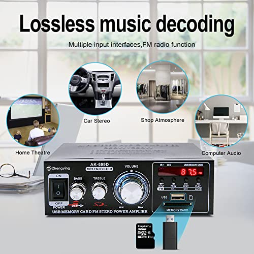 ENJOY HIGH-QUALITY AUDIO: Dual channel stereo amplifier receiver is perfect for your karaoke, home theater, acoustic sound system, and monitor headphones. Provide you with enough powerful power amplification, which can accommodate 2 sets of speakers.