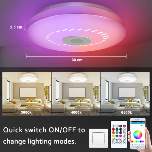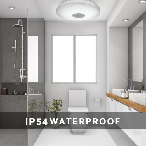Bathroom Ceiling Light 36W LED RGB Light with Bluetooth Speaker Dimmable Flush Mount Light with Remote & APP Control, RGB Colour Change 3000K-6500K, Adjustable Light for Bedroom Kitchen Living Room