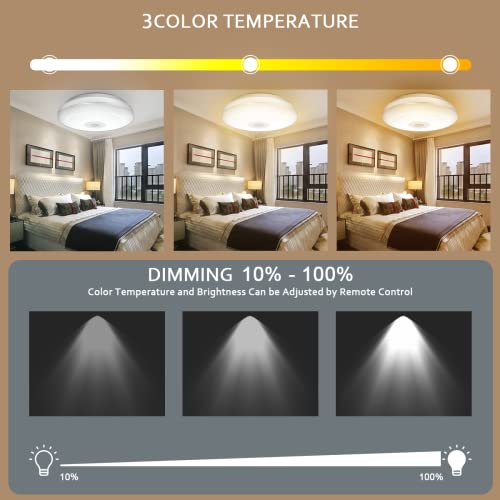🎵【Built-in Bluetooth Speaker】LED Music Ceiling Light has a built-in Bluetooth speaker, it can be easily connected to your cell phone, free to choose the music you want to listen to, with a variety of music modes, so that the light and the music rhythm flash together, very suitable for family carnival parties, and sleep hypnosis at night.