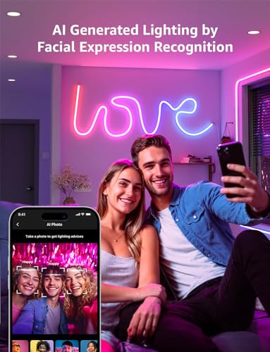 AI Generated Lighting by Facial Expression Recognition: Take a selfie or upload a photo to the Lepro+ app. LightGPM reads emotions and recommends LED lighting effects that reflect your feelings. Experience a personalized and captivating smart LED neon light that truly understands you.