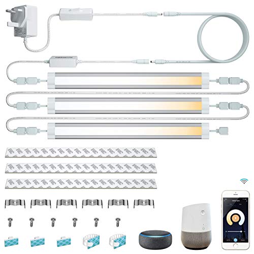 Smart LED Under Cabinet Lights Work with Alexa Siri Echo Google, Under Cabinet Lighting Warm to Cool White Strip, App or Voice Control 3 Lights Bar Kit for Kitchen Unit Light, Shelf, Counter Cupboard