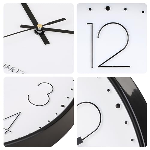 TOHOOYO Wall Clock 12 Inch Non-ticking Silent Quartz Decorative Clocks Modern Large Number Round Clock (Black)