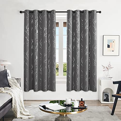 Deconovo Blackout Curtains 72 Drop Pair, Grey Thermal Curtains Eyelet, Tree Branches Printed Curtains for Living Room, 46 x 72 Inch (Width x Length), 2 Panels