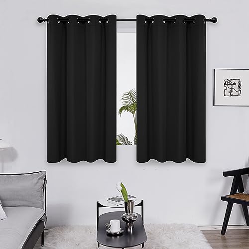 Deconovo Blackout Curtains Bedroom Super Soft Thermal Insulated Curtains Blackout Eyelet Blackout Curtains for Living Room 46 x 54 Inch Black 2 Panels