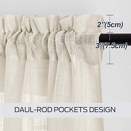PONY DANCE Living Room Voile Curtains – Linen Sheer Curtains with Slot Top for Sliding Glass Door Semi Transparent Sheer Curtain Drapes for Home Decoration, 2 Pieces, W 52 – D 95 inches, Beige Cream