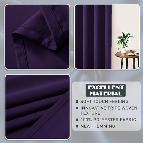 RAYYAN LINEN Thermal Pencil Pleat Blackout Tape Top Pair of Curtains With Free Tiebacks (46″ X 72″, Aubergine (Purple))
