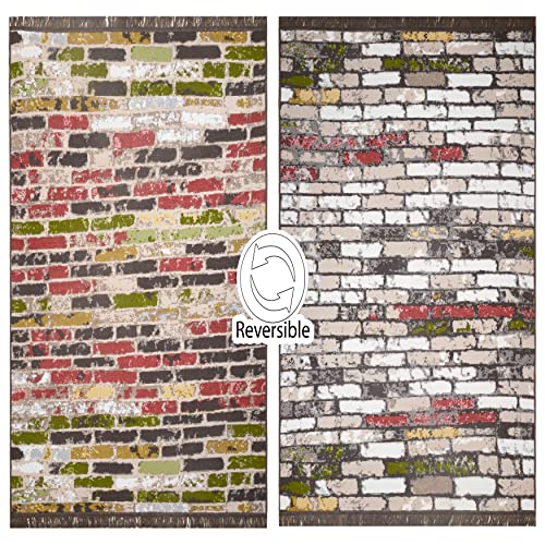 ALPSA TEXTILE Reversible Hallway Runner with Non Slip Mat | Machine Washable Area Rugs for Living Room, Bedroom and Kitchen | Carpet Runner Rugs for Hallway | Small Rug (Multi Color, 120 x 170)