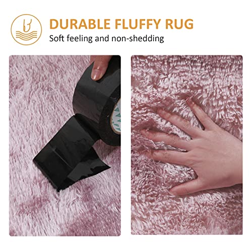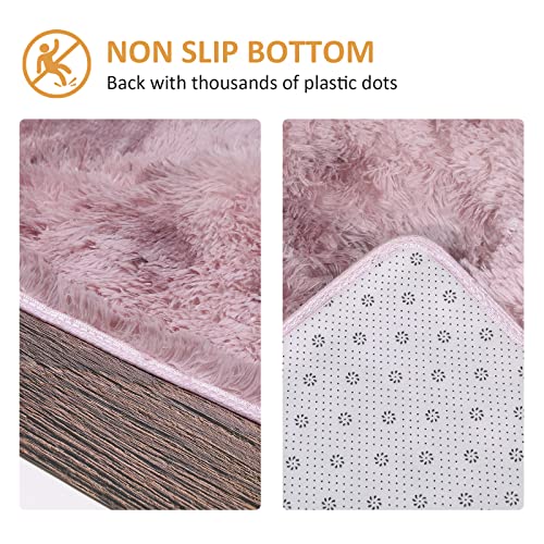 Pauwer Plush Shaggy Area Rugs Soft Fluffy Area Carpet Rugs Anti-Skid Thick Floor Carpet Mat for Living Room Bedroom (Pink, 160 x 200 cm)