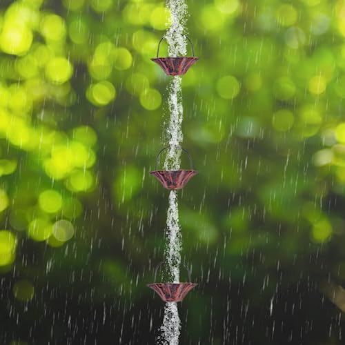 🏵️Exquisite Design:Each exquisite lotus cup of the rain chain for the gutter is handcrafted by skilled artisans. The flower cups are wide at the top and narrow at the bottom, with a hole in the middle to effectively channel rainwater and create a gorgeous vertical water feature. Elegant rain chains hang from gardens, porches, gazebos, decks, and front doors, leaving neighbors in awe when they see them.