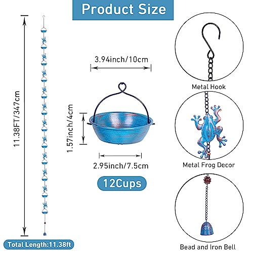 Rain Chain, 11.4FT Frog Rain Chains with 12 Cups, Functional and Decorative Replacement Downspout Rain Chains for Outside
