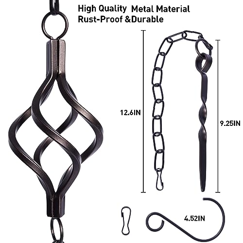 Rain Chain Size: The birdcage rain chains of 8.5 ft long can play a beautiful rain song for you. The rain gutter chains combined of 13 birdcages of 2.5 inches in width and 4.6 inches in height as well as chain, really lovely for what it looks like. The outdoor rain chain is good at guiding the flow of rainwater, while listening to the music played by the rain chain, you will be touched by the charm of life from the nature.