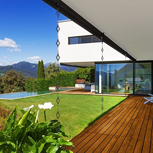 Rain chain Easy to Hang: It includes an additional 3.9″ wide hanger and an anchoring stake to easily remove these rain chains from any tree, window pane or patio, or set them on your drain, or hang them in a place where they can handle large amounts of water