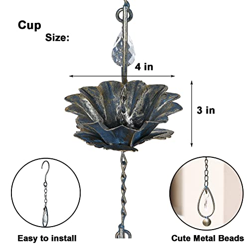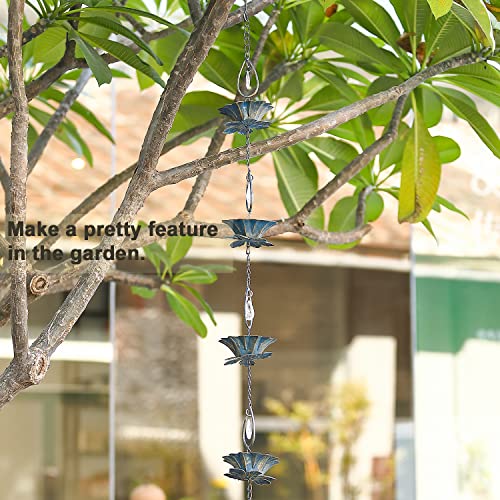 Rain Chains, 8.5Ft Length Replacement Downspout for Gutters, Acrylic Teardrop & Flower-Shaped Cup Rain Chain…