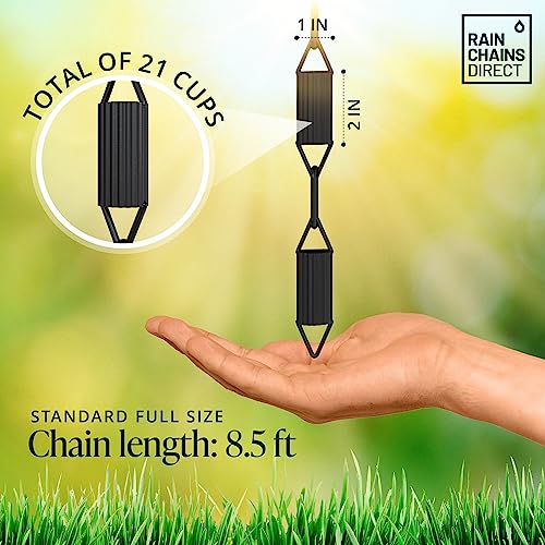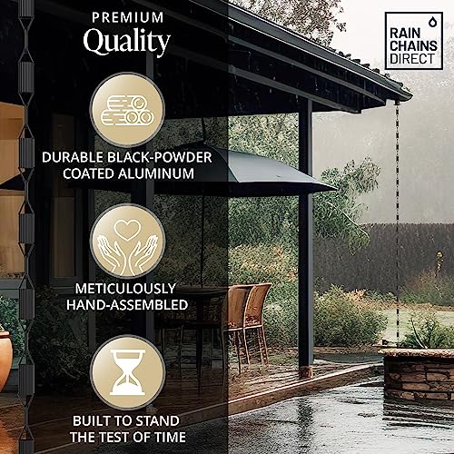 Rain Chains Direct – Manicotti Rain Chain – 8.5 FT – Durable Black Powder-Coated Aluminum – Premium Rain Chains for Gutters